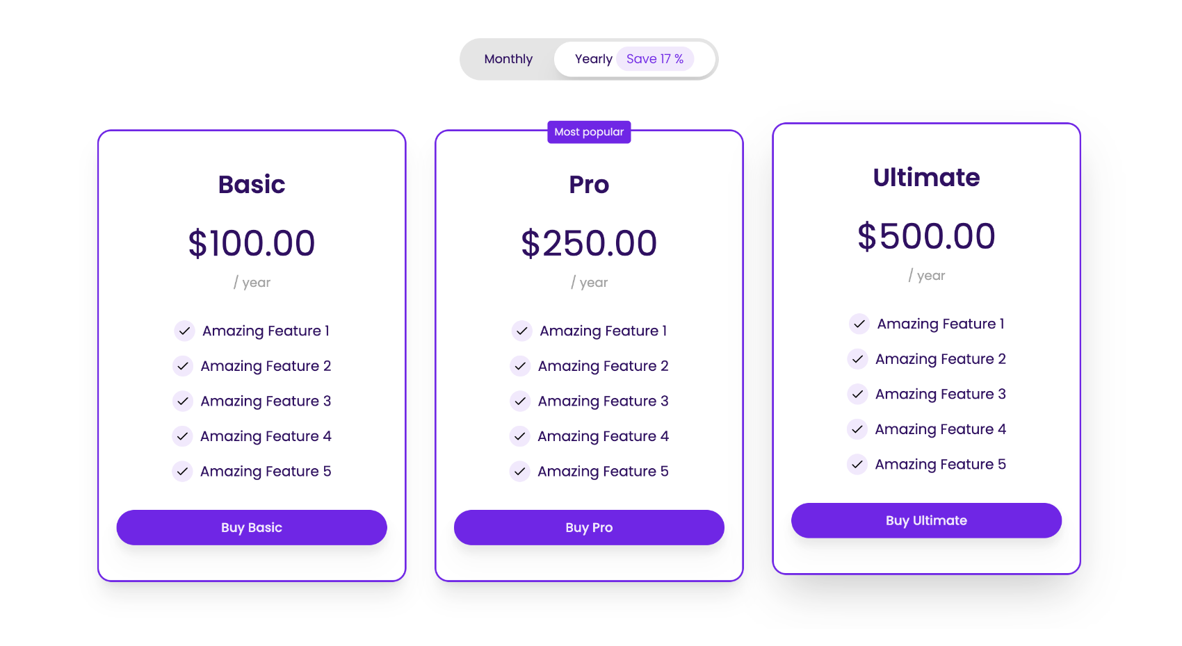 Create and manage your products, plans, and pricing, set features for each plan, mark a plan as featured, and more.